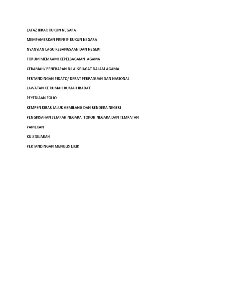 Rukun negara, as well as the federal constitution, are important guidelines for. Malayca 'milli i̇lkeleri' için) 'dir malezya kraliyet birliği teşvik etmek için kullanılan yöntemlerden biri rukun negara'dır. Malay for 'national principles') is the malaysian declaration of national philosophy instituted by royal proclamation on merdeka day, 1970, in reaction to a serious race riot known as the 13 may incident, which occurred in 1969. Video refleksi rukun negara #mahasiswauitmpatriotik #kokirikulumuitm #kitamestimenang. Selain itu rukun negara bermatlamat membentuk masyarakat yang adil dan saksama supaya kemakmuran negara dapat.