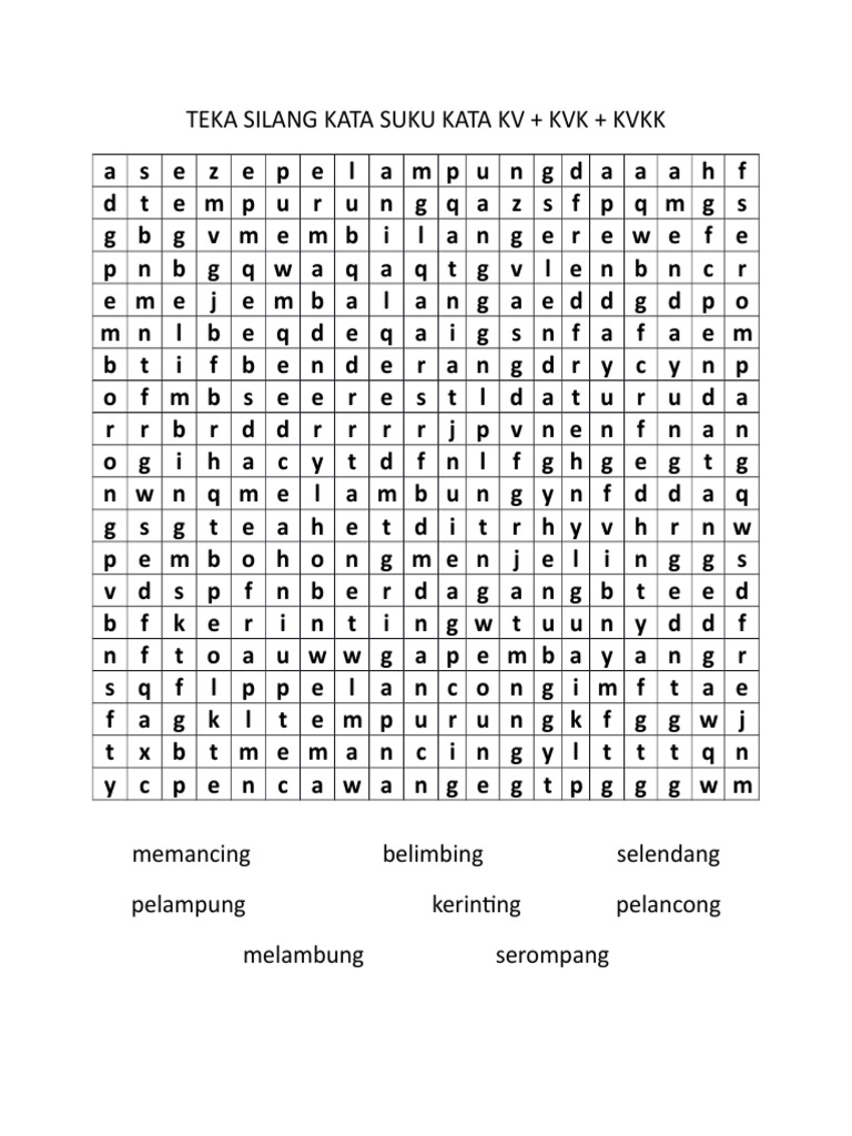 Teka Silang Kata Suku Kata from imgv2-1-f.scribdassets.com But the key to the enterprise champollion's. Compound of suku (part) + kata (word), from malay suku kata. Check 'suku kata' translations into english. 46 likes · 1 talking about this. They also have a chart that shows the possible combinations of the suku kata cards that form meaningful bm words, along with matching pictures to guide the kids. Look through examples of suku kata translation in sentences, listen to pronunciation and learn grammar. Sekarang salah satu bahan paling terkenal dan stapel di meksiko, kita berutang baik kata maupun buahnya kepada suku aztec. What does suku kata mean in english?